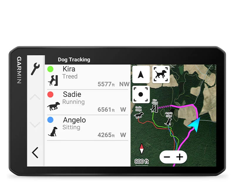 For hunters who want to track and monitor their dogs in the field, this rugged dog tracking GPS navigator can handle off-road terrain while following up to 20 dogs1 on its big, easy-to-read display.